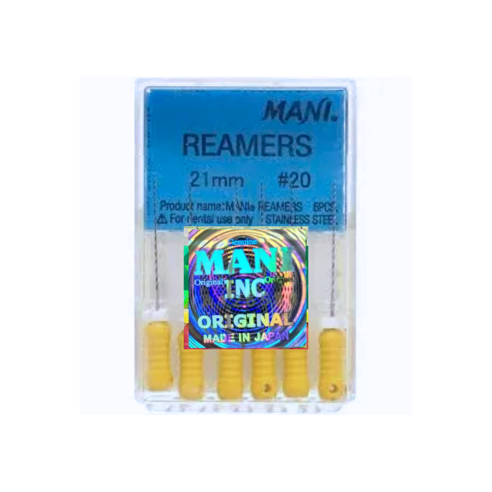 MANI Reamers 21mm are precision dental instruments meticulously crafted to meet the demands of endodontic procedures. With a length of 21 millimeters, these reamers offer versatility in addressing a wide range of root canal complexities. These instruments are designed to provide dental professionals with exceptional control and tactile during cleaning and shaping procedures. The 21mm length allows for effective access to root canals of varying depths while maintaining the precision required for successful treatment.